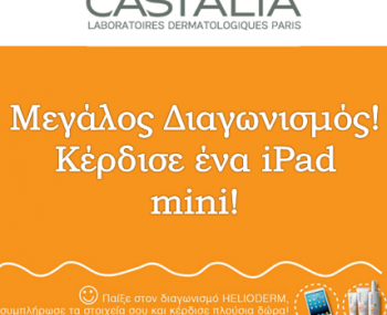 Η σελίδα Castalia Laboratoires Dermatologiques διοργανώνει διαγωνισμό Helioderm και σας δίνει τη δυνατότητα να κερδίσετε ένα i-Pad mini (1ο δώρο), αντηλιακή προστασία Castalia για ΌΛΟ το καλοκαίρι (2o δώρο) και 10 σετ αντηλιακής προστασίας (3ο δώρο).