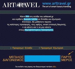 Αυτή την φορά, το Art Travel σας χαρίζει ένα δωρεάν ονειρεμένο διήμερο στο ολοκαίνουριο ξενοδοχείο Cavo Olympo στη σκιά του Ολύμπου στο Λιτόχωρο Πιερίας. Η προσφορά περιλαμβάνει: 1 δίκλινο δωμάτιο για 2 διανυκτερεύσεις με πρωινό καθημερινά.