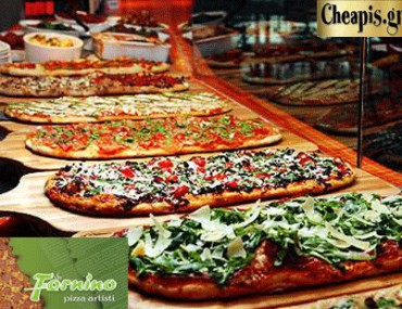 Το Cheapis.gr σε συνεργασία με τη Fornino pizza Artisti σας προσφέρει 2 κομμάτια pizza 20Χ30, επιλογή ανάμεσα σε 26 διαφορετικές γεύσεις και 2 αναψυκτικά της επιλογής σας, με μόλις 1 € (αξίας 10€ – έκπτωση 90%).