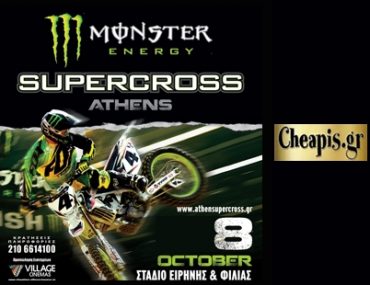 Το Cheapis.gr σας προσφέρει ένα εισιτήριο κεντρικού τμήματος για να απολαύστε ένα μοναδικό θέαμα, το SUPERCROSS ATHENS στο Στάδιο Ειρήνης & Φιλίας στις 8 Οκτωβρίου,με μόλις 10 € (αξίας 20€ – έκπτωση 50%).