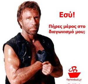 To CaptainBook.gr διοργανώνει διαγωνισμό στο facebook και δίνει τη δυνατότητα σε 5 τυχερούς να κερδίσουν από ένα ημερολόγιο-ανεκδοτολόγιο 2012 Chuck Norris, που κυκλοφόρησε πρόσφατα από τις εκδόσεις Ιβίσκος!
