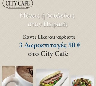 28-05-2012 Διαγωνισμός του City-Cafe με δώρο 3 δωροεπιταγές αξίας 50€ Το City-Cafe στον Πειραιά διοργανώνει διαγωνισμό και σας δίνει τη δυνατότητα να κερδίσετε 3 δωροεπιταγές αξίας 50€. Περισσοτερα...