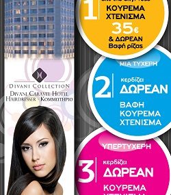 Η City Press εξασφαλίζει σε μία υπερτυχερή ΔΩΡΕΑΝ κούρεμα, χτένισμα και ανταύγειες στο Divani Caravel Hotel Hairdresser. Μία ακόμα τυχερή θα κερδίσει ΔΩΡΕΑΝ βαφή, κούρεμα και χτένισμα.