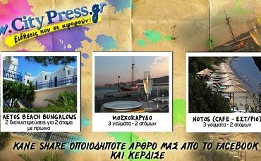 Το City Press διοργανώνει διαγωνισμό και σας δίνει τη δυνατότητα να κερδίσετε ένα πλήρες πακέτο διακοπών στο Μαρμάρι Καρύστου με διαμονή και διατροφή.