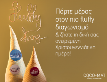 Η σελίδα Coco-Mat Greece διοργανώνει διαγωνισμό και σας δίνει τη δυνατότητα να κερδίσετε 5 Χριστουγεννιάτικα μαγικά κουτιά Coco-mat τα οποία περιέχουν είτε πετσέτες Ευφροσύνη, παντόφλες COCO-MAT και μαξιλαράκι λεβάντας είτε μπουρνούζι Ευφροσύνη, παντόφλες COCO-MAT και μαξιλαράκι λεβάντας.