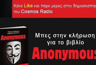 Η σελίδα του Cosmos96.5 διοργανώνει διαγωνισμό και σας δίνει τη δυνατότητα να κερδίσετε 2 βιβλία ‘Anonymous’, από τις εκδόσεις Κονιδάρη.