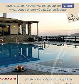 Τα COSTA COFFEE διοργανώνουν διαγωνισμό και σας κάνουν δώρο ένα τριήμερο (δύο διαμονές) για 2 άτομα με πρωινό στο ΑΙΓΑΙΑ Hotel στην Κάρυστο Ευβοίας.