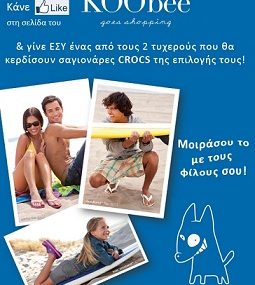 Ο ΚΟΟbee ετοιμάζεται για διακοπές και μοιράζει δώρα στους φίλους του! ΚΑΝΤΕ ΤΩΡΑ “Like” στη σελίδα του KOObee και 2 τυχεροί, μετά από κλήρωση, θα κερδίσουν σαγιονάρες CROCS της επιλογής τους.