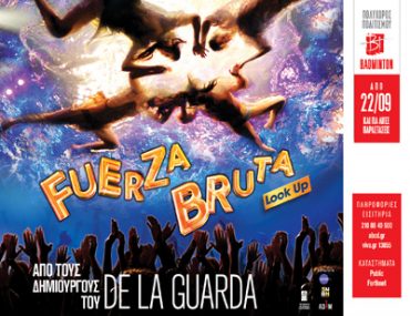 Το Culturenow.gr διοργανώνει διαγωνισμό και σας δίνει τη δυνατότητα να κερδίσετε 5 διπλές προσκλήσεις για την παράσταση Fuerza Bruta, Look Up, στο Θέατρο Badminton, από το Culturenow.gr, για την Κυριακή 23 Σεπτεμβρίου 2012.