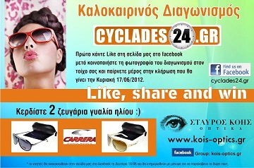 Το cyclades24.gr διοργανώνει διαγωνισμό και σας δίνει τη δυνατότητα να κερδίσετε 2 γυαλιά ηλίου Carrera απο τα ΟΠΤΙΚΑ ΣΤΑΥΡΟΣ ΚΟΗΣ.