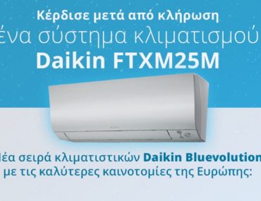 H Daikin Hellas διοργανώνει διαγωνισμό και σας δίνει τη δυνατότητα να κερδίσετε ένα κλιματιστικό FTXM25M της σειράς Bluevolution!