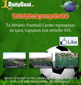 Το Athletic Football Center και το DailyGoal.gr προσφέρουν σε τρεις τυχερούς ένα γήπεδο 5Χ5 για 1 ώρα.