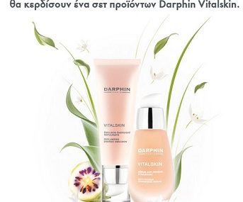 Η σελίδα Darphin Greece διοργανώνει διαγωνισμό και σας δίνει τη δυνατότητα να κερδίσετε 40 σετ προϊόντων Darphin Vitalskin (έναν δυναμωτικό ορό κατά της κούρασης και ένα emulsion για επαναφόρτιση και ενεργοποίηση).
