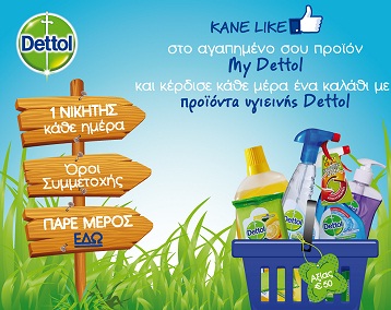 Η σελίδα Dettol Greece διοργανώνει διαγωνισμό και σας δίνει τη δυνατότητα να κερδίσετε ένα καλάθι προϊόντων Dettol κάθε μέρα.