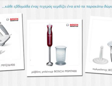 Το yumm.gr διοργανώνει διαγωνισμό και σας δίνει τη δυνατότητα να κερδίσετε ένα μίξερ χειρός της Bosch MFQ36400 ή μια ράβδο μπλέντερ της Bosch MSM7400 ή έναν πολυκόπτη Bosch MMR08AI.