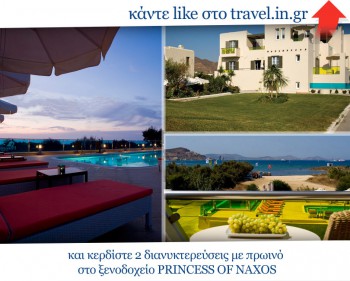 Οι “Διακοπές”, σε συνεργασία με το ξενοδοχείο Princess of Naxos, θα ταξιδέψουν τρεις τυχερούς αναγνώστες τους στο όμορφο κυκλαδίτικο νησί, προσφέροντάς τους τριήμερη διαμονή στο πολυτελές ξενοδοχείο στη Χώρα της Νάξου.