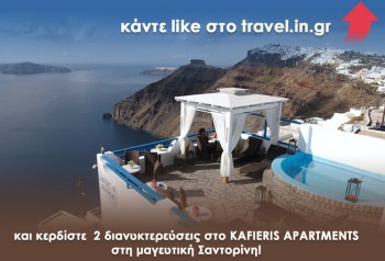 Οι “Διακοπές”, σε συνεργασία με τα Kafieris Apartments, προσφέρουν σε έναν τυχερό αναγνώστη τους, τρεις μέρες χαλάρωσης και απόλαυσης στα απόκρυμνα βράχια, στο Φηροστεφάνι Σαντορίνης.