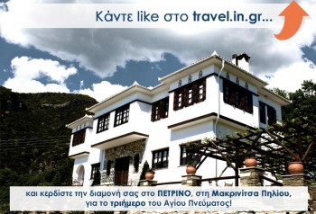 Οι diakopes.in.gr σε συνεργασία με το Ξενοδοχείο “Πέτρινο” σάς προσφέρουν τη διαμονή σας, για το τριήμερο του Αγίου Πνεύματος, στην παραδοσιακή Μακρινίτσα και στο Πήλιο, το βουνό των Κενταύρων.