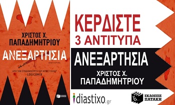 Το diastixo.gr σε συνεργασία με τις εκδόσεις Πατάκη, προσφέρει στους αναγνώστες του 3 αντίτυπα από το μυθιστόρημα του Χρίστου Χ. Παπαδημητρίου Ανεξαρτησία.