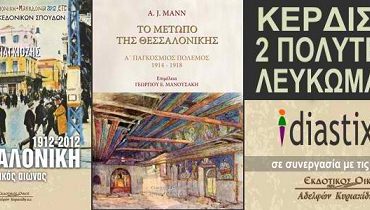 Το diastixo.gr σε συνεργασία με τις εκδόσεις των Αδελφών Κυριακίδη, προσφέρει στους αναγνώστες του 2 πολυτελή λευκώματα: «Θεσσαλονίκη 1912-2012. Ο συναρπαστικός αιώνας» του Φαίδωνα Γιαγκιόζη και «Το μέτωπο της Θεσσαλονίκης. Α΄ Παγκόσμιος Πόλεμος 1914-1918» του A. J. Mann.