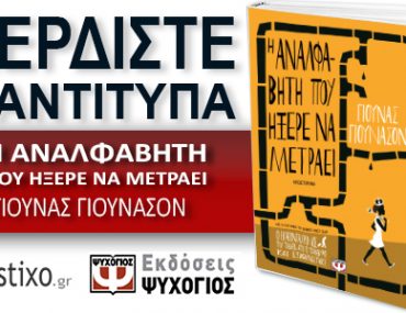 Το diastixo.gr σε συνεργασία με τις εκδόσεις Ψυχογιός, προσφέρει στους αναγνώστες του 3 αντίτυπα από το μυθιστόρημα του Γιούνας Γιούνασον, Η ΑΝΑΛΦΑΒΗΤΗ ΠΟΥ ΗΞΕΡΕ ΝΑ ΜΕΤΡΑΕΙ.