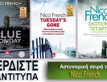 Το diastixo.gr σε συνεργασία με τις εκδόσεις Διόπτρα, προσφέρει στους αναγνώστες του 6 βιβλία της αστυνομικής σειράς των Nicci French: BLUE MONDAY, TUESDAY’S GONE, ΣΚΟΤΕΙΝΗ ΤΕΤΑΡΤΗ.