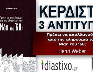 Το diastixo.gr σε συνεργασία με τιε εκδόσεις Ηλίβατον, προσφέρει στους αναγνώστες του 3 αντίτυπα από το βιβλίο του Henri Weber, ΠΡΕΠΕΙ ΝΑ ΑΠΑΛΛΑΓΟΥΜΕ ΑΠΟ ΤΗΝ ΚΛΗΡΟΝΟΜΙΑ ΤΟΥ ΜΑΗ ΤΟΥ ’68;