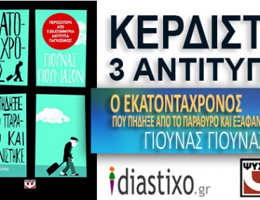 Το diastixo.gr σε συνεργασία με τις εκδόσεις Ψυχογιός, προσφέρει στους αναγνώστες του 3 αντίτυπα από το μυθιστόρημα του Γιούνας Γιούνασον Ο ΕΚΑΤΟΝΤΑΧΡΟΝΟΣ ΠΟΥ ΠΗΔΗΞΕ ΑΠΟ ΤΟ ΠΑΡΑΘΥΡΟ ΚΑΙ ΕΞΑΦΑΝΙΣΤΗΚΕ.