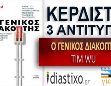 Το diastixo.gr σε συνεργασία με τις εκδόσεις Γιαλός, προσφέρει στους αναγνώστες του 3 αντίτυπα από το βιβλίο του Tim Wu Ο ΓΕΝΙΚΟΣ ΔΙΑΚΟΠΤΗΣ.