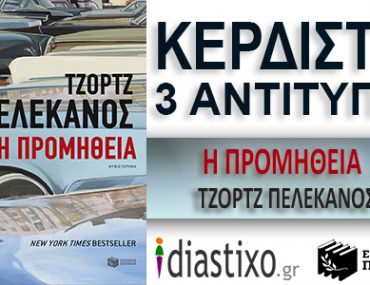 Το diastixo.gr σε συνεργασία με τις εκδόσεις Πατάκη, προσφέρει στους αναγνώστες του 3 αντίτυπα από το μυθιστόρημα του Τζορτζ Πελεκάνος Η ΠΡΟΜΗΘΕΙΑ.