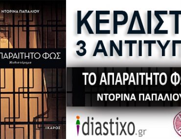 To diastixo.gr σε συνεργασία με τις εκδόσεις Ίκαρος, προσφέρει στους αναγνώστες του 3 αντίτυπα από το μυθιστόρημα της Ντορίνας Παπαλιού ΤΟ ΑΠΑΡΑΙΤΗΤΟ ΦΩΣ.