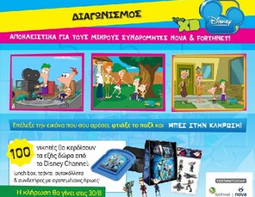 Η forthnetgroup.gr διοργανώνει διαγωνισμό για τους συνδρομητές Nova και Forthnet και σας δίνει τη δυνατότητα να κερδίσετε 100 δώρα από το Disney Channel, lunch box, τσάντες, αυτοκόλλητα και συνδετήρες με αγαπημένους ήρωες.