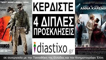 Το diastixo.gr, σε συνεργασία με την Ταινιοθήκη της Ελλάδος και τον Κινηματογράφο Έλλη, προσφέρει στους αναγνώστες του 4 διπλές προσκλήσεις, για την προβολή των ταινιών «Άννα Καρένινα» και «Django O Tιμωρός».