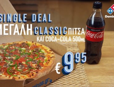 Το cheapis.gr σας προσφέρει απόλαυση Domino’s σε λαχταριστή τιμή! Μόνο με 3,95€ (αξίας 14,20€ – έκπτωση 70%) επιλέξτε μια οποιαδήποτε μεγάλη πίτσα Domino’s.