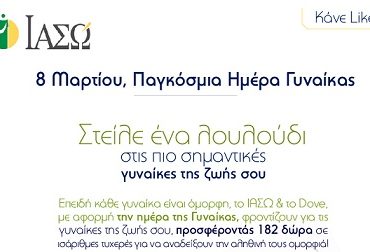 Η παγκόσμια ημέρα της γυναίκας πλησιάζει! Εσύ έδειξες στην καλύτερη σου φίλη, στην μητέρα σου, στην αδελφή σου πόσο σημαντικές είναι για εσένα στέλνοντας τους ένα λουλούδι για 182 πλούσια δώρα από το ΙΑΣΩ και το Dove; Μην καθυστερείς.