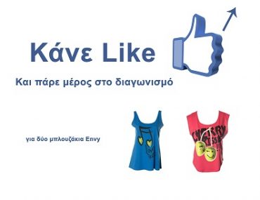 28-05-2012 Διαγωνισμός e-Seleno με δώρο δύο μπλούζες ENVY Το e-Seleno διοργανώνει διαγωνισμό και σας δίνει τη δυνατότητα να κερδίσετε δύο μπλούζες ENVY. Περισσοτερα...