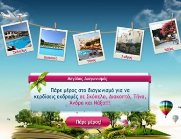 Το ekdromi.gr διοργανώνει διαγωνισμό και σας δίνει τη δυνατότητα να κερδίσετε 5 πακέτα διαμονής με 3 διανυκτερεύσεις στη Σκόπελο, στο Διακοπτό, στην Τήνο, στην Άνδρο και στη Νάξο.