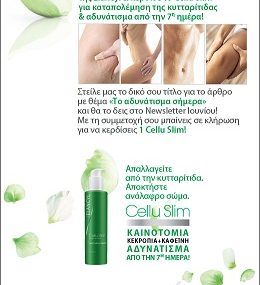 Η σελίδα Elancyl διοργανώνει διαγωνισμό και σας δίνει τη δυνατότητα αν κερδίσετε ένα Cellu Slim για Αδυνάτισμα από την 7η ημέρα.
