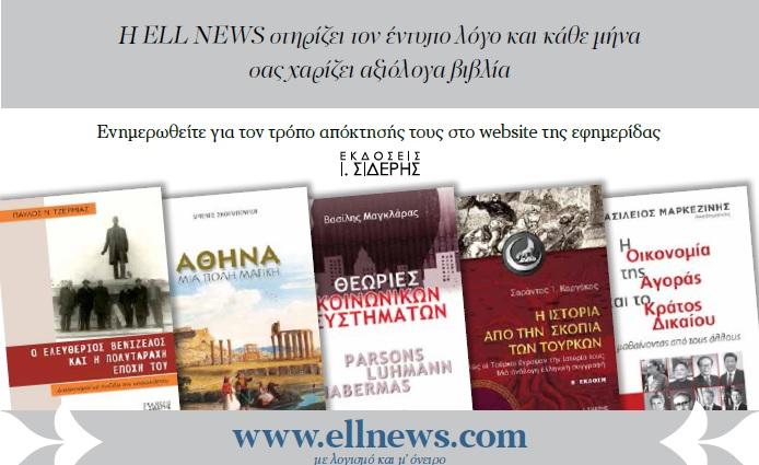 Η ELL NEWS στηρίζοντας τον πολιτισμό και δη τον έντυπο λόγο, προσφέρει κάθε μήνα αξιόλογα βιβλία, με την ευγενική χορηγία και σύμπραξη των σημαντικότερων και μεγαλύτερων εκδοτικών οίκων της Ελλάδος.