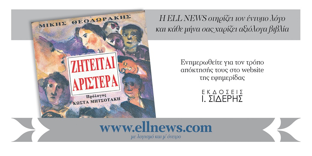 Για τον Μάρτιο και την πολύτιμη σύμπραξη των εκδόσεων “Ι.ΣΙΔΕΡΗΣ”, οι τυχεροί αναγνώστες της ELL NEWS μπορούν να διεκδικήσουν 5 συνολικά βιβλία του Μίκη Θεοδωράκη με τίτλο: «Ζητείται Αριστερά».