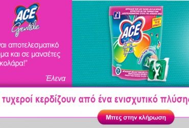Το epithimies.gr διοργανώνει διαγωνισμό και δίνει τη δυνατότητα σε 4000 τυχερούς να κερδίσουν μία κανονική συσκευασία προϊόντος Ace Gentile EasyDose ενισχυτικό πλυσίματος της Procter & Gamble.