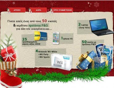 Η σελίδα epithimies.gr διοργανώνει διαγωνισμό και σας δίνει τη δυνατότητα να κερδίσετε 1 iphone 4s, 2 laptop Vaio, 4 Nintendo Wii, 25 Prepaid cards των 200€ και 50 Χριστουγεννιάτικα πακέτα προϊόντων P&G.
