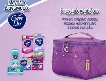 Η Everyday διοργανώνει διαγωνισμό και δίνει τη δυνατότητα σε 5 τυχερές να κερδίσουν από 1 πλήρες σετ προϊόντων EveryDay, καθώς και από ένα υπέροχο νεσεσέρ, για να τα έχουν μαζί τους κάθε στιγμή!