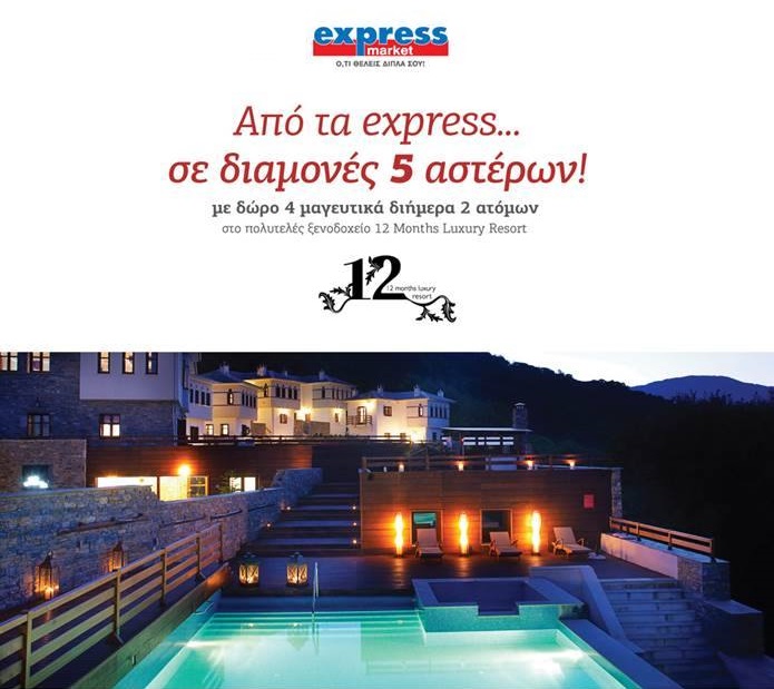 To Express Market διοργανώνει διαγωνισμό και δίνει τη δυνατότητα σε 4 τυχερούς να κερδίσουν ο καθένας ένα μαγευτικό διήμερο για 2 άτομα στο πολυτελές ξενοδοχείο «12 Months Luxury Resort» στην Τσαγκαράδα Πηλίου!