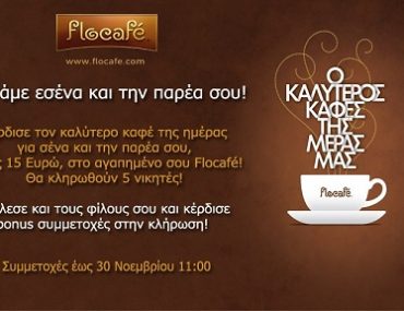 Τα Flocafé διοργανώνουν διαγωνισμό και δίνουν τη δυνατότητα σε 5 τυχερούς να κερδίσουν τον καλύτερο καφέ της ημέρας, για εσάς και την παρέα σας, αξίας 15 Ευρώ.