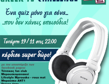 Παίξτε στο εβδομαδιαίο GREEK TV CHALLENGE που διοργανώνει το flooxi.com, απαντήστε σωστά σε περισσότερες ερωτήσεις από τους αντιπάλους σας με θέμα την ελληνική τηλεόραση και κερδίστε ένα φοβερό set ακουστικών Sony αξίας 20 ευρώ.