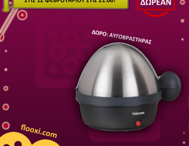 Εγγραφείτε στο δωρεάν κουίζ “Μαγειρική” του flooxi.com και παίξτε στις 12 Φεβρουαρίου στις 21:00 για να διεκδικήσετε έναν Αυγοβραστήρα Tristar!
