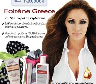 Η σελίδα Foltene Greece διοργανώνει διαγωνισμό και δίνει τη δυνατότητα σε 50 super τυχερούς να κερδίσουν υπέροχα συλλεκτικά πουγκάκια σχεδιασμένα από τη μοναδική Βίκυ Κουλιανού γεμάτα με τα αγαπημένα σας προϊόντα FOLTÈNE Pharma.