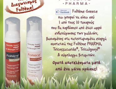 Η σελίδα foltene greece διοργανώνει διαγωνισμό και σας δίνει τη δυνατότητα να κερδίσετε 10 αφρούς ενδυνάμωσης μαλλιών Foltene Pharma!