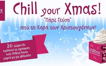 Chill your Xmas και “πάρε γεύση” από τη χαρά των Χριστουγέννων! Βρες και ταίριαξε τις ίδιες γεύσεις Chillbox frozen yogurt και μπες στην κλήρωση για να κερδίσεις το αγαπημένο σου Chillbox frozen yogurt για μία εβδομάδα. 30 τυχεροί κερδίζουν!